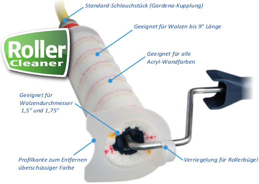 Reinigt Farbroller in nur 30 Sekunden und entfernt alle Acryl- und Wandfarben.
